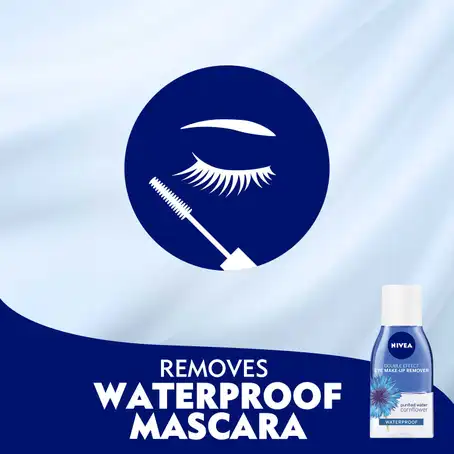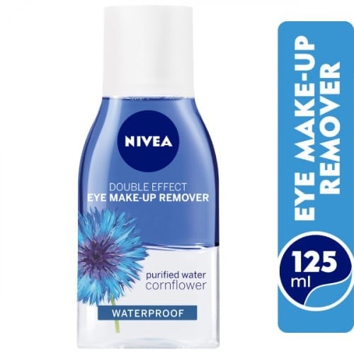 NIVEA Double Effect Eye Makeup Remover عبارة عن تركيبة غير دهنية وخفيفة تزيل مكياج العين بلطف وفعالية بما في ذلك الماسكارا المقاومة للماء دون الحاجة إلى الفرك أو الشطف.