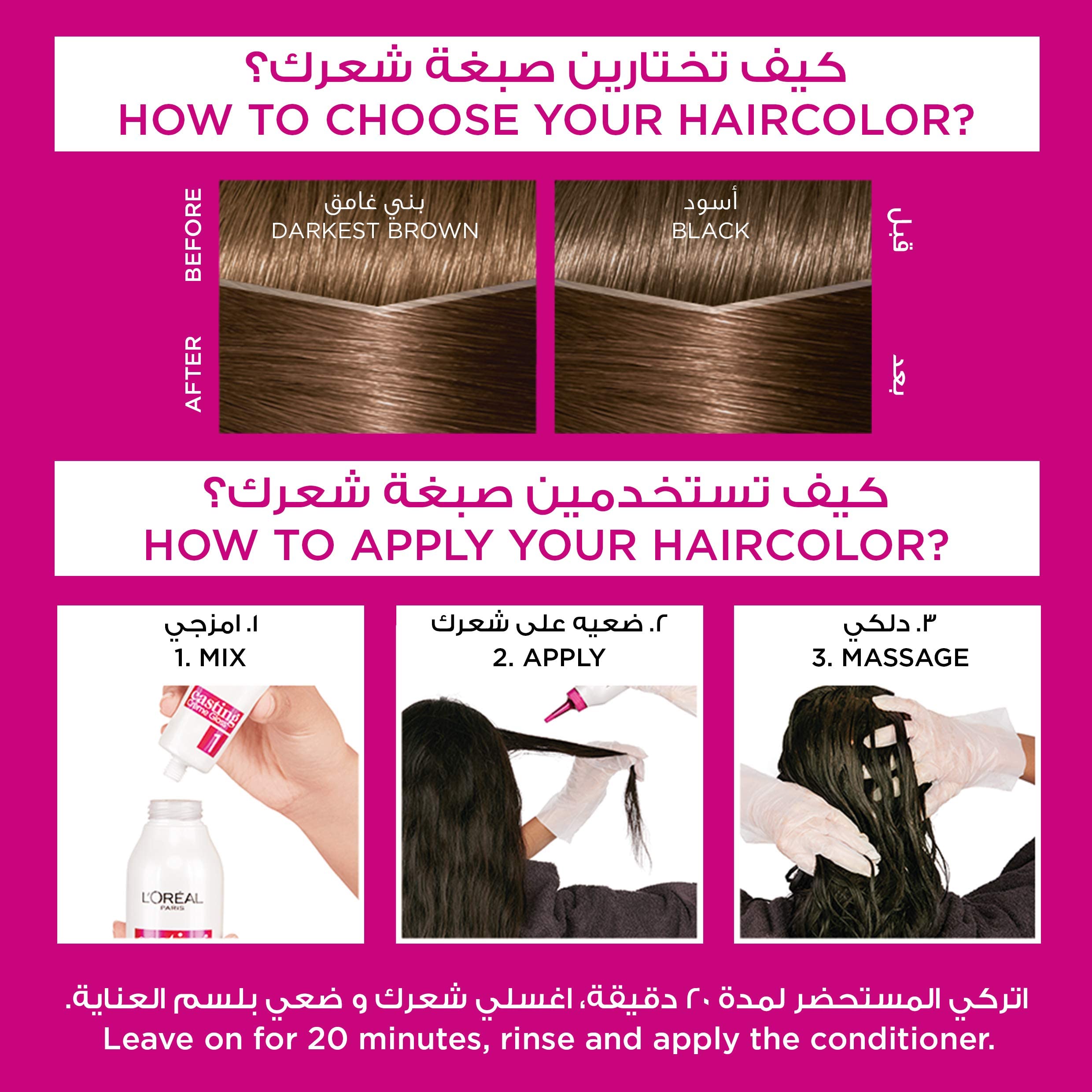 - تركيبة خالية من الأمونيا لرائحة لطيفة. اللون يدوم حتى 28 شامبو.