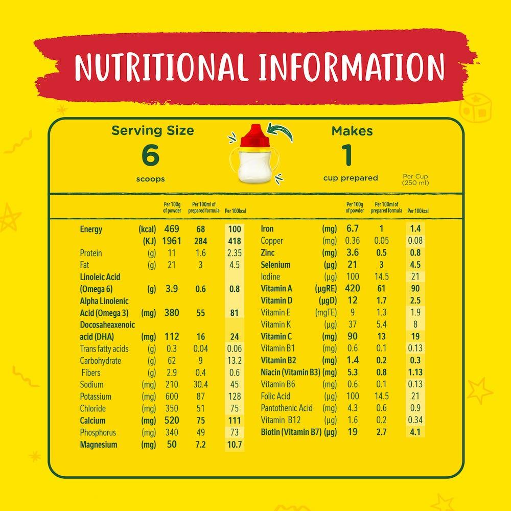 - ، ليس بديلاً عن حليب الثدي ، ولكن تركيبة غذائية مناسبة للأطفال الأصحاء من سن 1