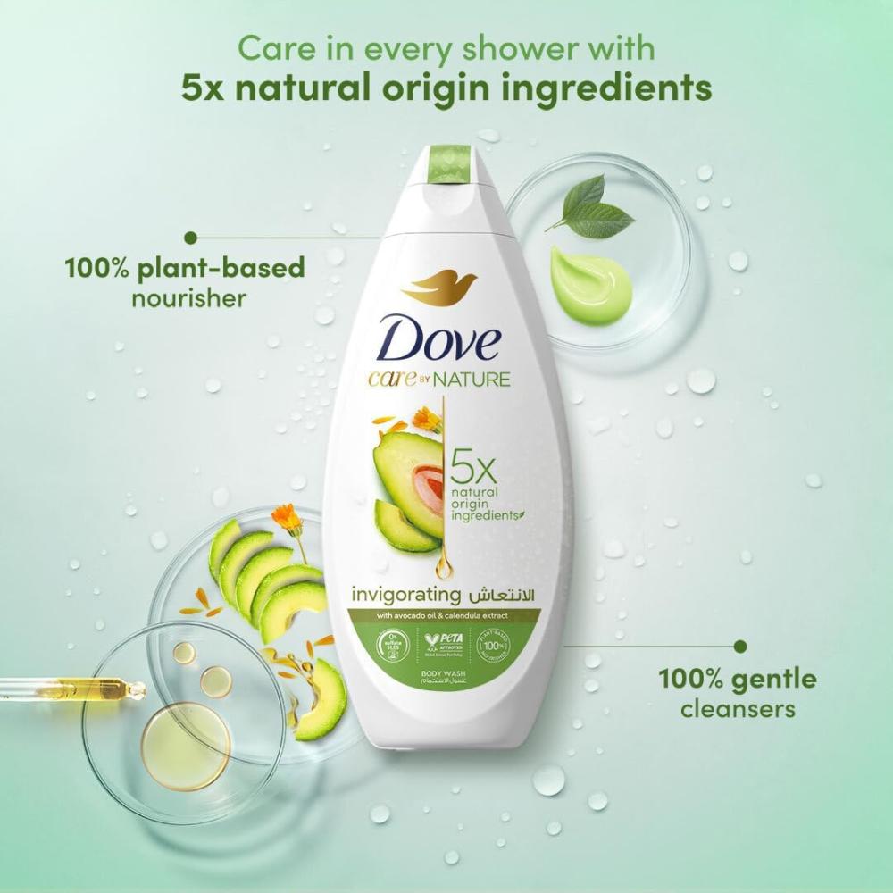 - غسول الجسم Dove Invigorating Ritual يستخدم مزيجًا مغذيًا ومنشطًا من زيت الأفوكادو وخلاصة الآذريون لإحياء البشرة وتجعلك تشعر بالانتعاش. غسول الجسم هذا مستوحى من الطقوس التي تمارسها النساء في أمريكا الوسطى.