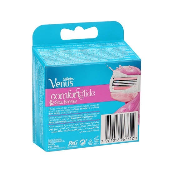 - إنها شفرات ماكينة الحلاقة جيليت فينوس Spa Breeze للنساء، مع 3 شفرات وأشرطة جل حلاقة مدمجة.